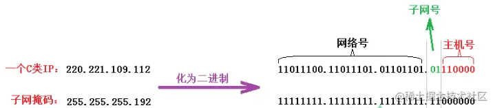 子网号的位数没有硬性规定,可使用子网掩码来确定一个IP地址中哪几位是主机号,子网掩码中的1,标识了 IP 地址中相应的网络号和子网号;0 标识了主机号。如图: