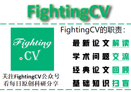 已建立深度学习公众号——FightingCV,关注于最新论文解读、基础知识巩固、学术科研交流,欢迎大家关注!!!