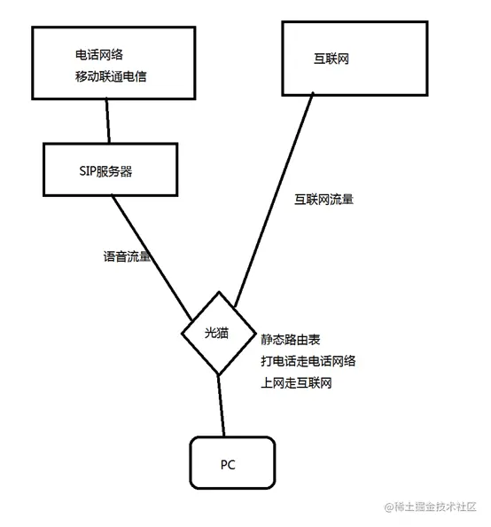 我们办理的宽带一般都含有座机服务,有一个座机号,自己买个座机插到光猫的语音口上就能用。光猫内置语音服务,座机通过电话线接上光猫来打电话,这个语音服务本质上是VOIP,基于IP的语音传输,光猫在VOIP和模拟信号之间转换。我们可以接入该语音网络,用VOIP软件来使用运营商的语音服务。