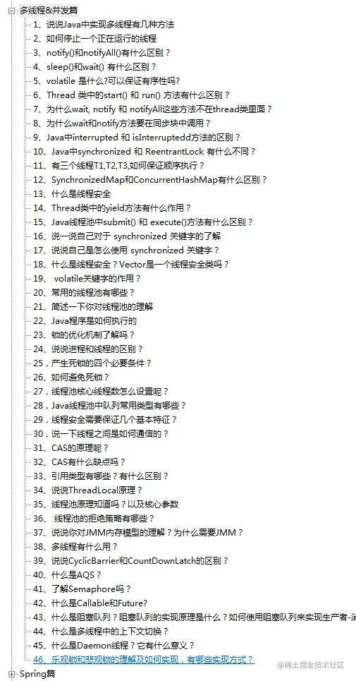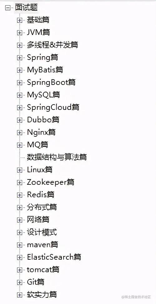 小编分享的这份Java面试复习体系总结包含了:基础篇、JVM篇、多线程&并发篇、Spring篇、MyBatis篇、SpringBoot篇、MySQL篇、SpringCloud篇、Dubbo篇、Nginx篇、MQ篇、数据结构与算法篇、Linux篇、Zookeeper篇、Redis篇、分布式篇、网络篇、设计模式、maven篇、ElasticSearch篇、tomcat篇、Git篇、软实力篇等等,23个篇章和大公司最爱问的500多道Java面试题,是小编在各个大厂总结出来的面试真题,已经有很多粉丝靠这份PDF拿下众多大厂的offer,今天在这里总结分享给到大家**+XXX_WWW666666获取**小编这篇分享篇幅可能有点长,观看的朋友可以先了解一下目录