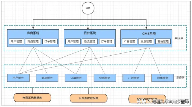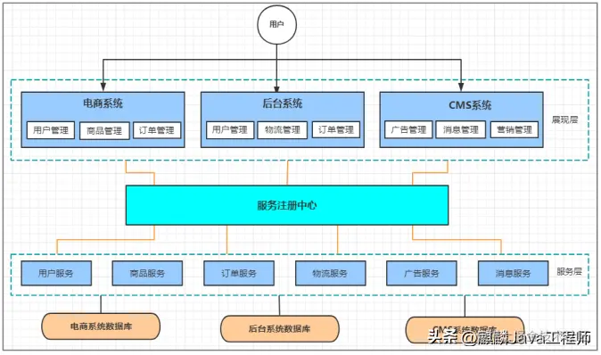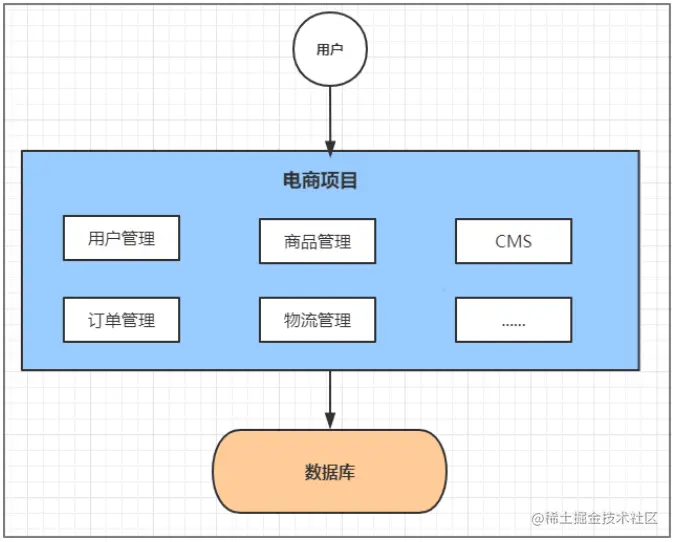 比如说一个电商系统,里面会包含很多用户管理,商品管理,订单管理,物流管理等等很多模块,我们会把它们做成一个web项目,然后部署到一台tomcat服务器上。