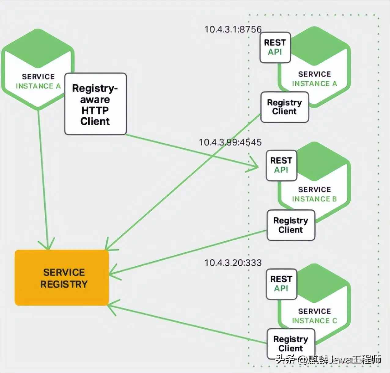 服务注册:服务实例将自身服务信息注册到注册中心。