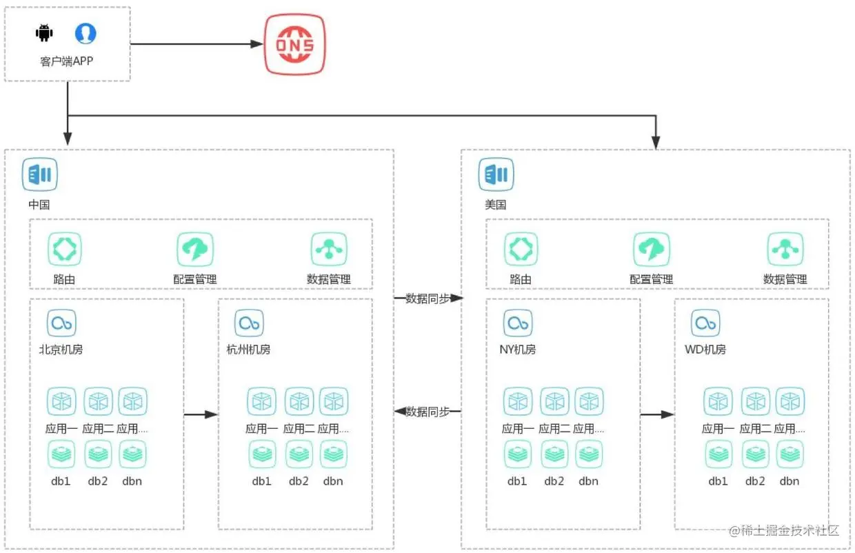 随着应用用户不断的增加,用户群体分布在全球各地,如果把服务器部署在一个地方,一个机房,比如北京,那么美国的用户使用应用的时候就会特别慢,因为每一个请求都需要通过海底光缆走上个那么一秒钟(预估)左右,这样对用户体验及其不好。怎么办?使用多机房部署。