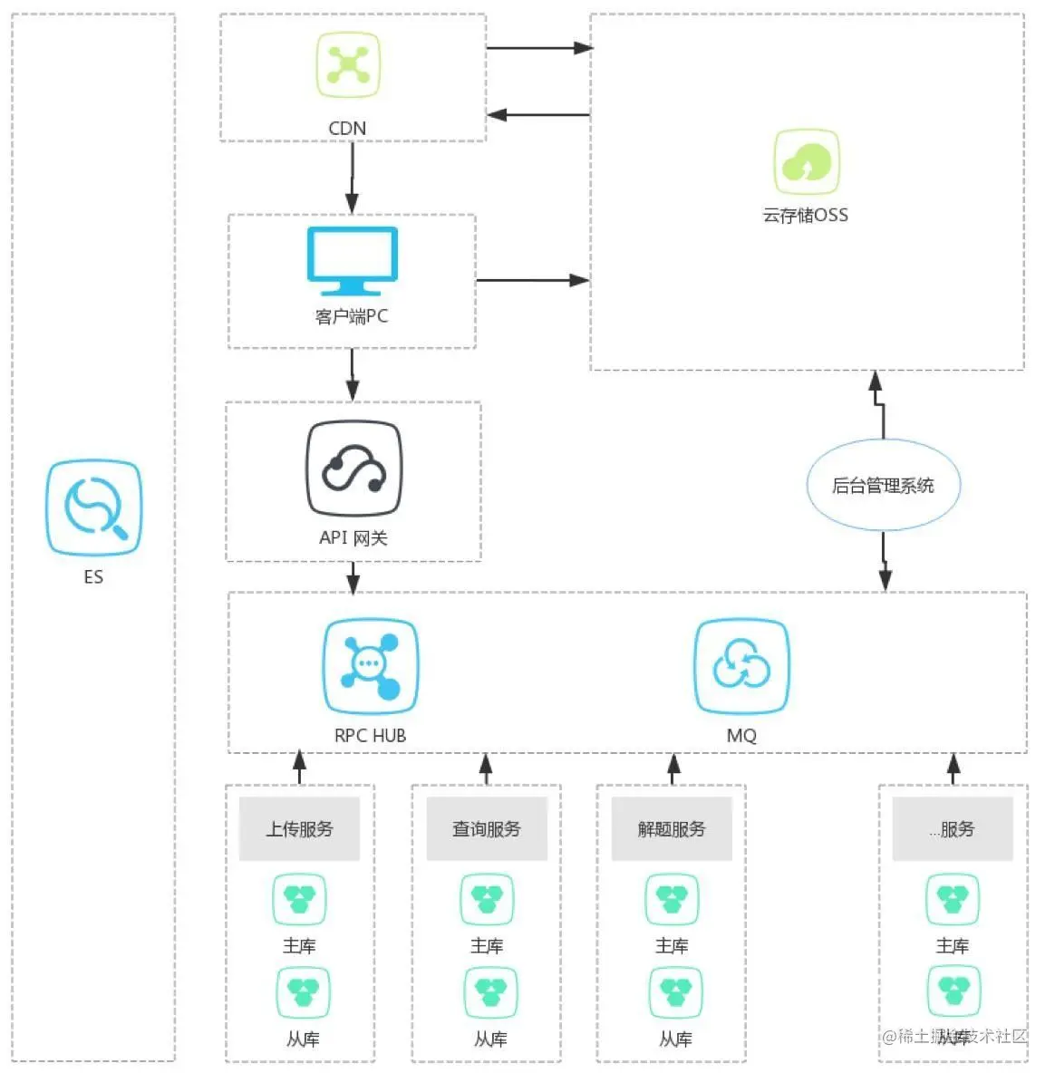 如上图所示,我把业务分块,做了垂直切分,切成一个个独立的系统,每个系统各自衍化,有自己的库、缓存、ES等辅助系统,系统之间的实时交互通过RPC,异步交互通过MQ,通过这种组合,共同完成整个系统功能。 那么,这么做是否真的解决上述问题了呢?不玩虚的,一个个来说。对于问题一,由于拆分成了多个子系统,系统的压力被分散了,而各个子系统都有自己的数据库实例,所以数据库的压力变小。