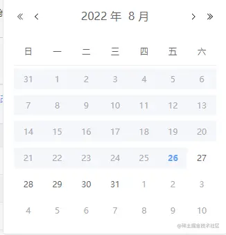 - disabledDate:设置禁用状态,参数为弹窗显示的对应日期,要求返回 Boolean