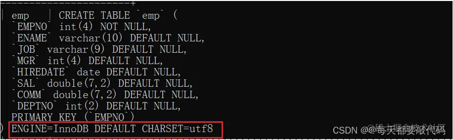 CREATE TABLE `t_x` ( `id` int(11) DEFAULT NULL ) ENGINE=InnoDB DEFAULT CHARSET=utf8;