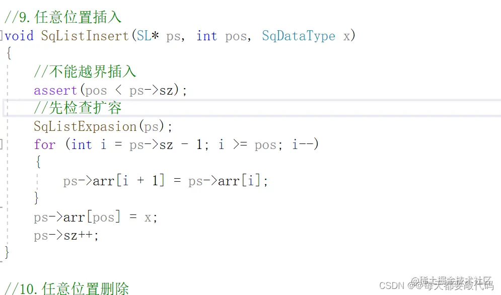 一种直接给你下标pos,就把数据插入到pos里;比如:我们直接给出下标pos=1的位置插入,这时我们插入之前就要判断pos下标是不是越界;直接用assert(possz) 断言就可以。
