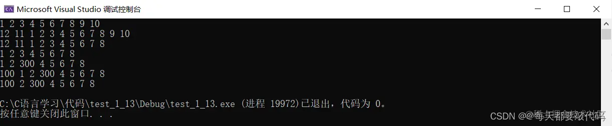 我们不妨在下标为0的元素前面插入100;看运行结果: