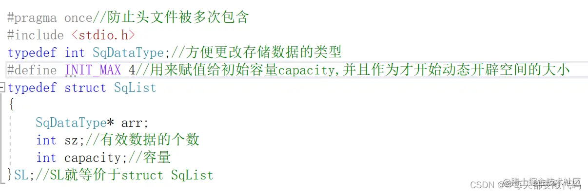 包括存储数据的数组arr,用malloc创建出来、有效数据的个数sz、容量capacity;下面一起来实现吧: