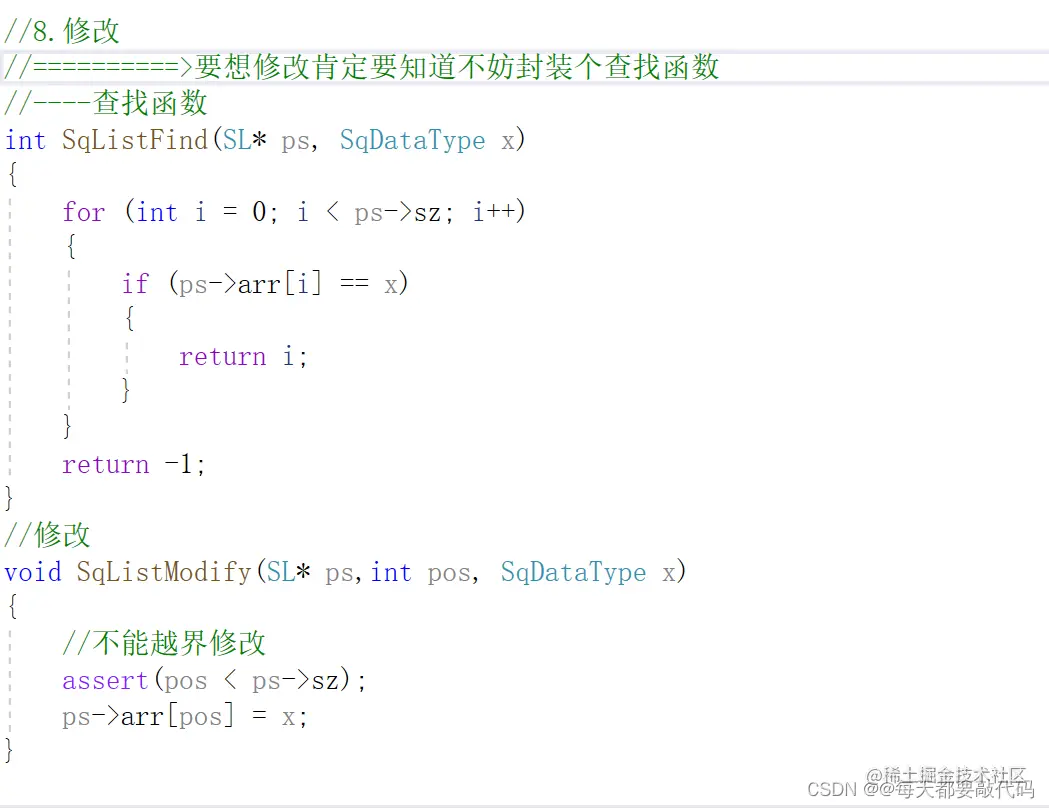 在修改数据之前,我们肯定要先进行查找,根据数据的下标进行修改操作,所以不妨先封装一个查找的函数SqListFind;根据这个查找函数找下标,然后在传参进行修改: