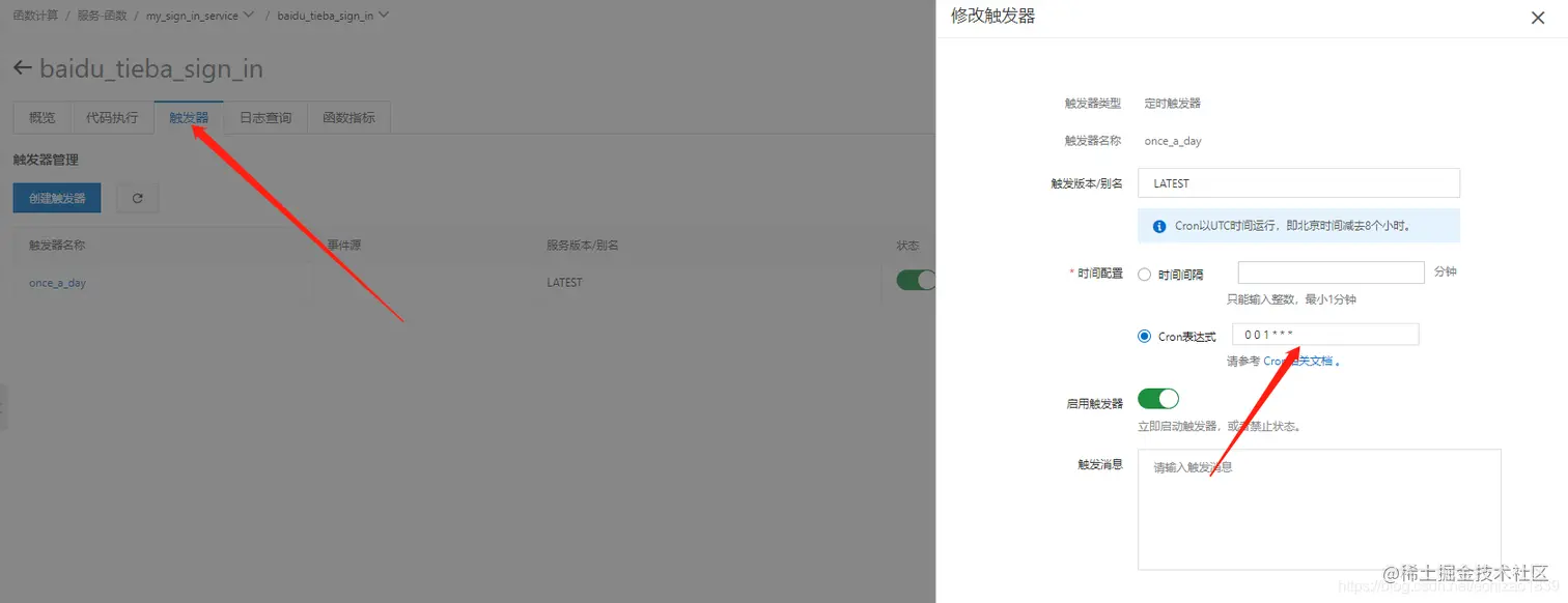 3,创建触发器(每天凌晨一点执行)