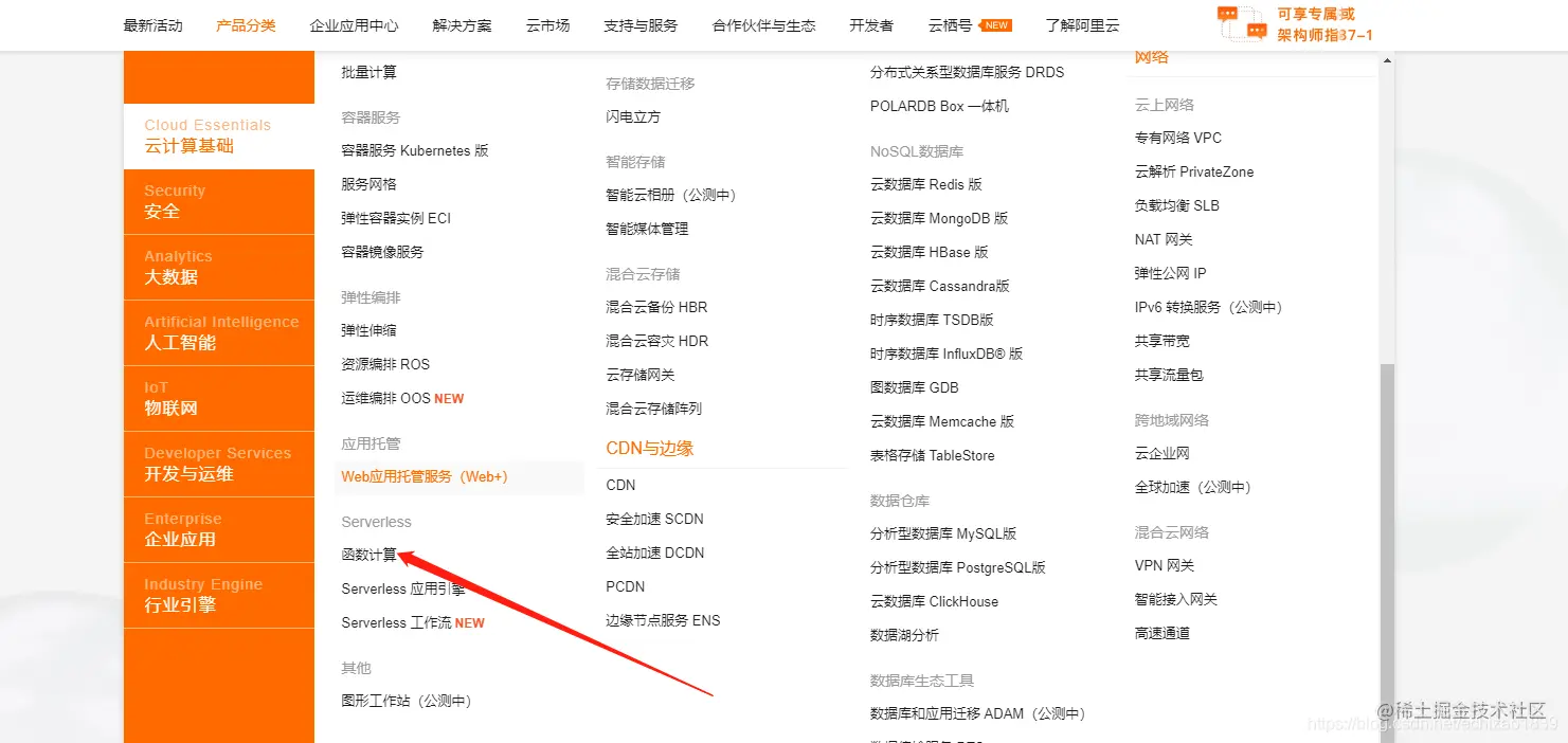 1,点击进入函数计算入口