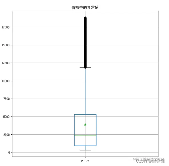 plt.title("价格中的异常值", size=12)