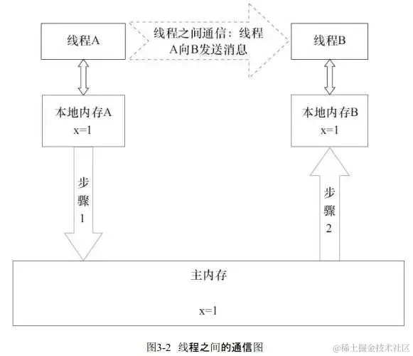 JMM模型下的线程间通信:
