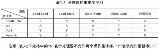 每个处理器上的写缓冲区,仅仅对它所在的处理器可见。这会导致处理器执行内存操作的顺序可能会与内存实际的操作执行顺序不一致。由于现代的处理器都会使用写缓冲区,因此现代的处理器都会允许对写-读操作进行重排序:
