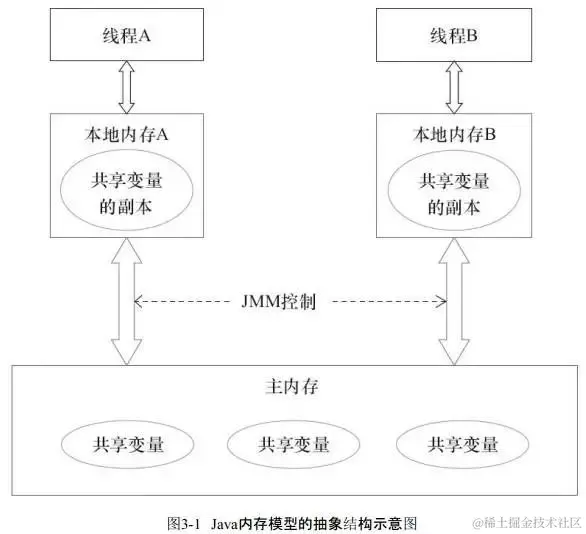 Java虚拟机规范中定义了Java内存模型(Java Memory Model,JMM),用于屏蔽掉各种硬件和操作系统的内存访问差异,以实现让Java程序在各种平台下都能达到一致的并发效果,JMM规范了Java虚拟机与计算机内存是如何协同工作的:规定了一个线程如何和何时可以看到由其他线程修改过后的共享变量的值,以及在必须时如何同步的访问共享变量。