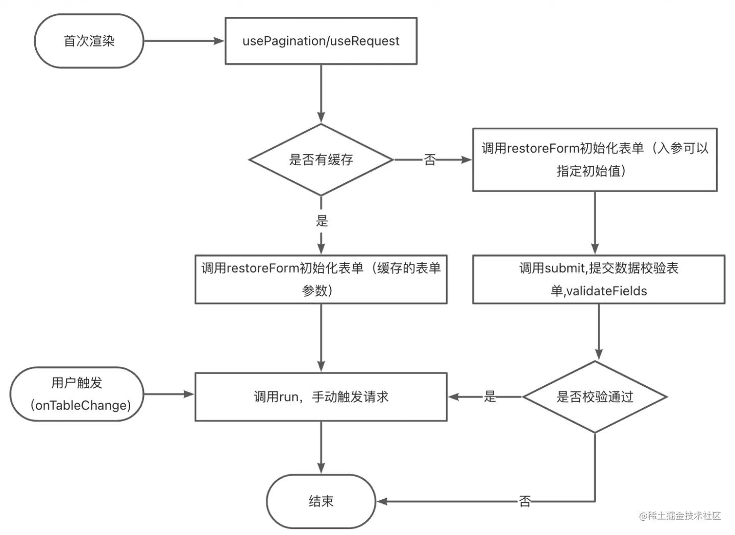 - 出参:扩展了pagination,额外返回分页信息以及分页操作函数以便给组件层使用。