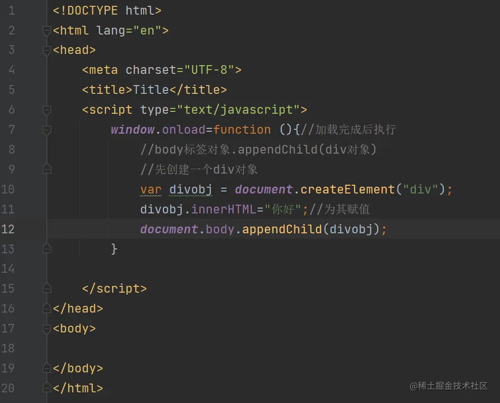 注意:这里我们必须使用window.onload=function(){}保证里面代码在页面加载完成后再执行,否则会出现body对象为空的错误