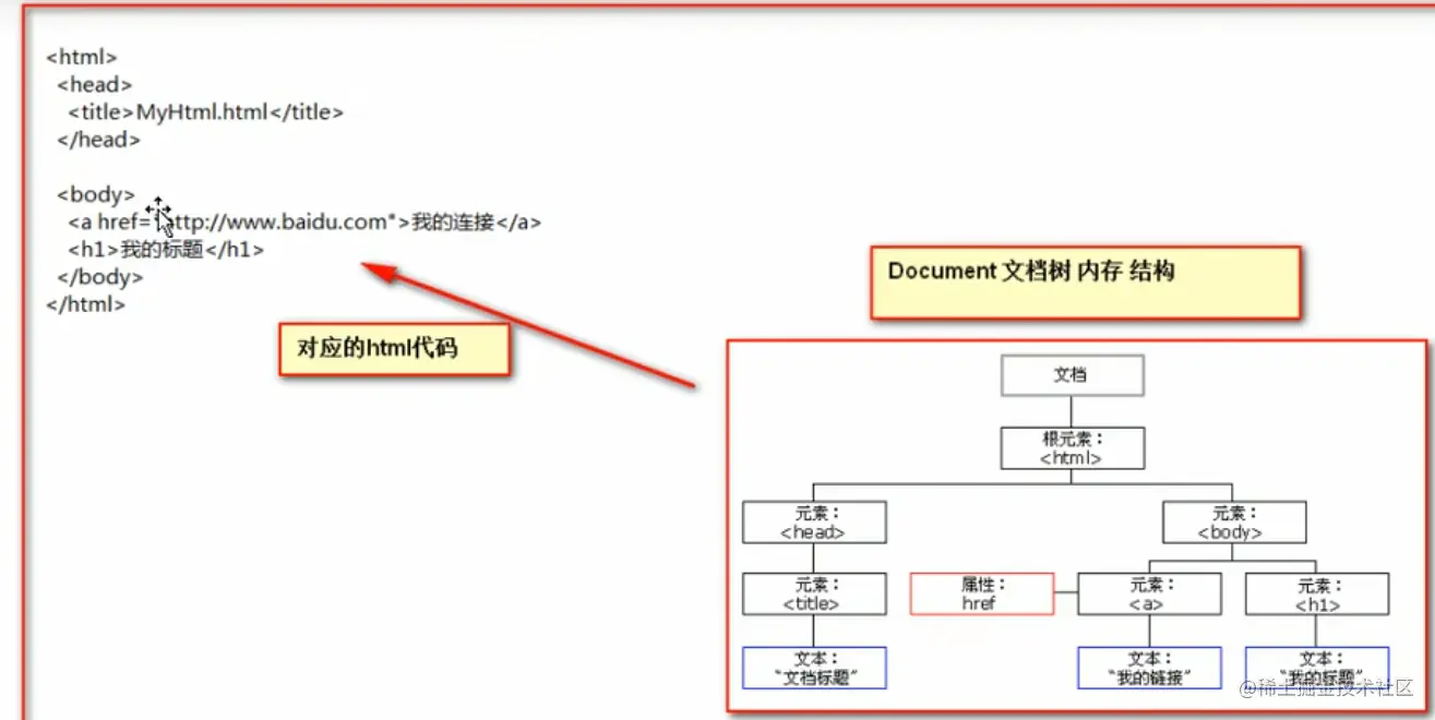 简而言之就是 我们把文档(即一个html页面)中的标签、属性、文本转换成对象来管理