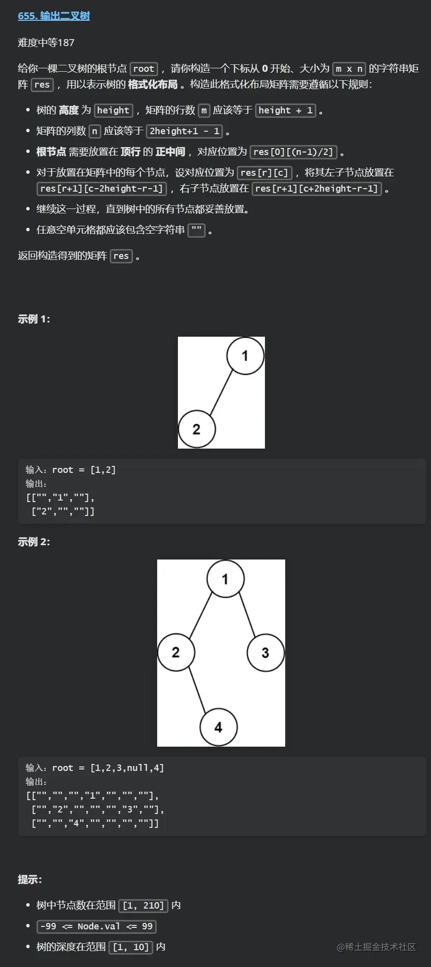 本次刷题日记的第 104 篇,力扣题为:655. 输出二叉树