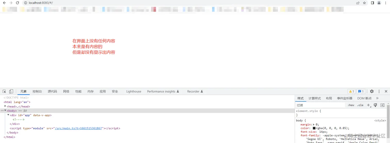 在浏览器上出现空白页面。