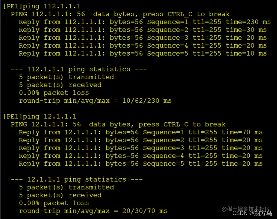 [PE1-GigabitEthernet0/0/0.10]ip address 12.1.1.2 24
