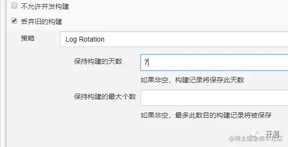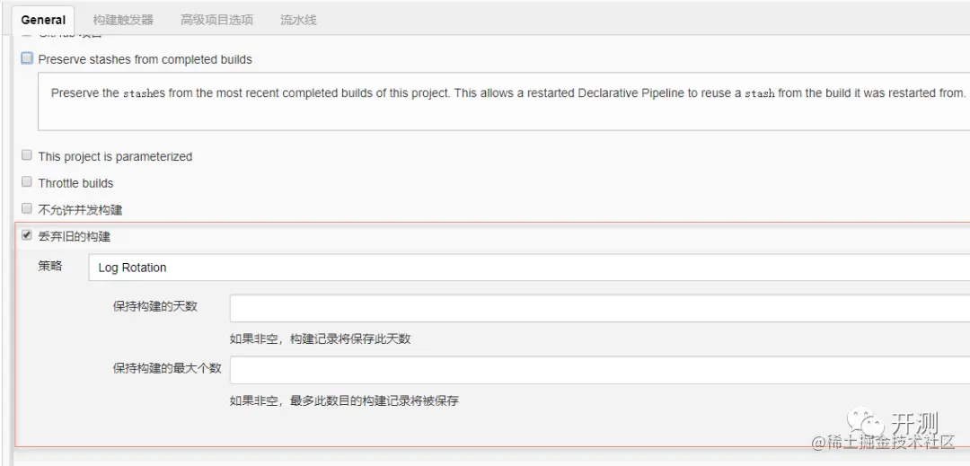 想保留最近几次历史构建就可以勾选此项并填入想要保留的构建次数。每次构建都需要占不少的空间,因此不建议大量保存构建历史。