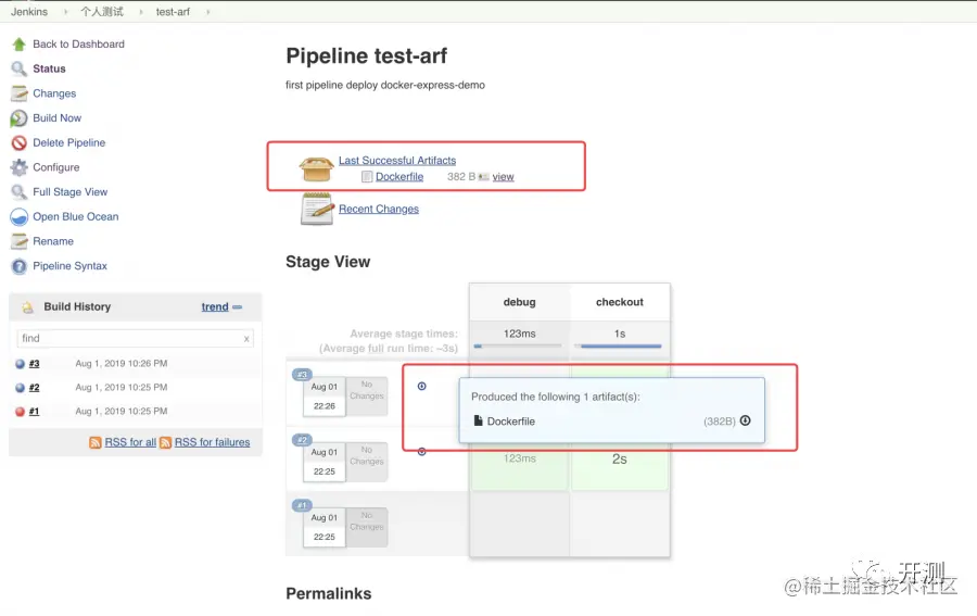 archiveArtifacts(artifacts: 'testProject', onlyIfSuccessful: true) //编译制品归档