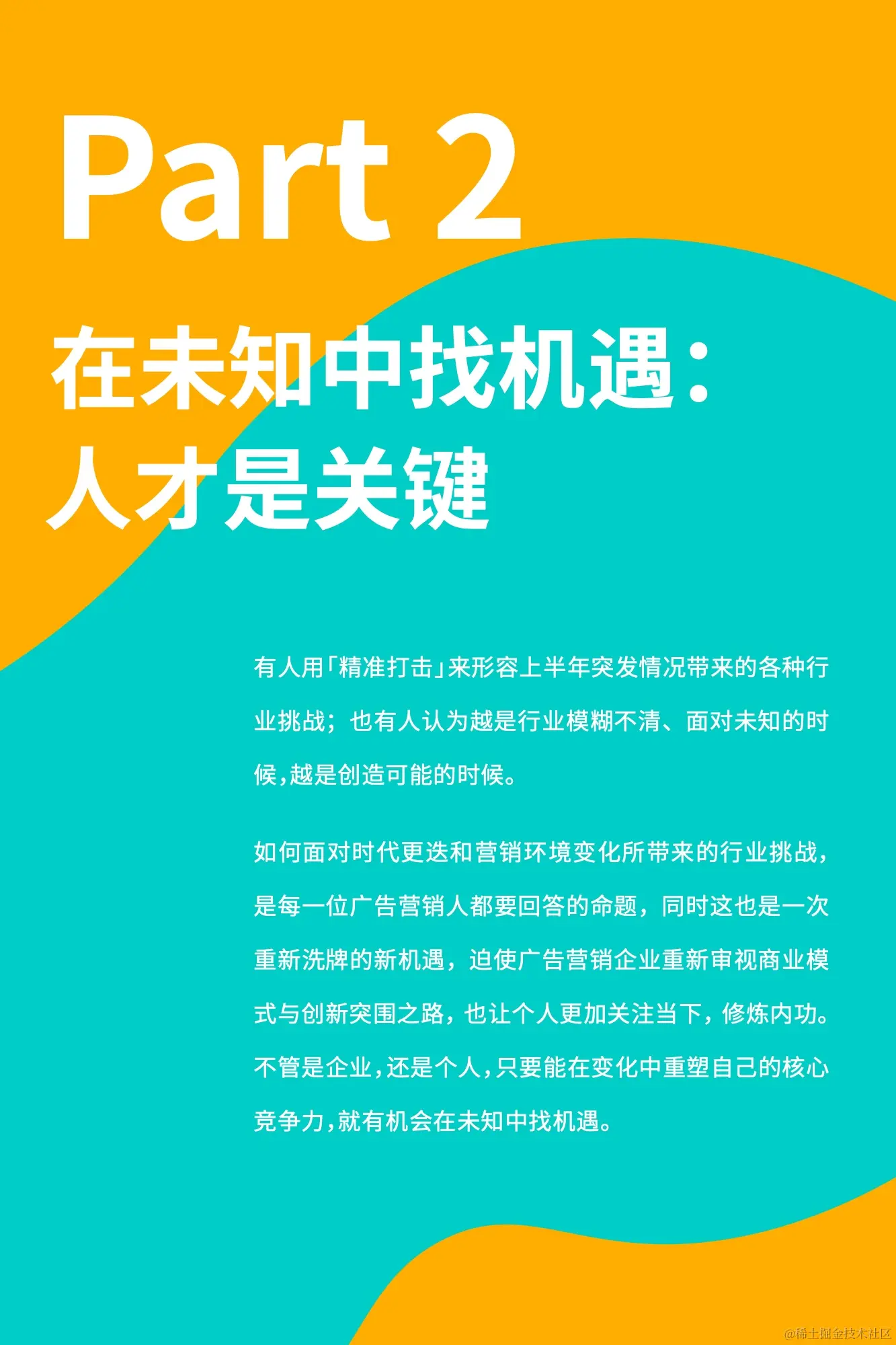 有人用「精准打击」来形容上半年突发情况带来的各种行业挑战;也有人认为越是行业模糊不清、面对未知的时候,越是创造可能的时候。如何面对时代更迭和营销环境变化所带来的行业挑战,是每一位广告营销人都要回答的命题,同时这也是一次重新洗牌的新机遇,迫使广告营销企业重新审视商业模式与创新突围之路,也让个人更加关注当下,修炼内功。不管是企业,还是个人,只要能在变化中重塑自己的核心竞争力,就有机会在未知中找机遇。