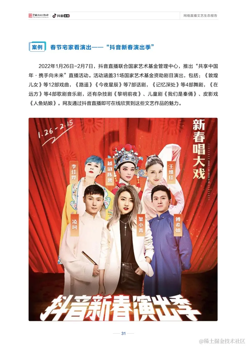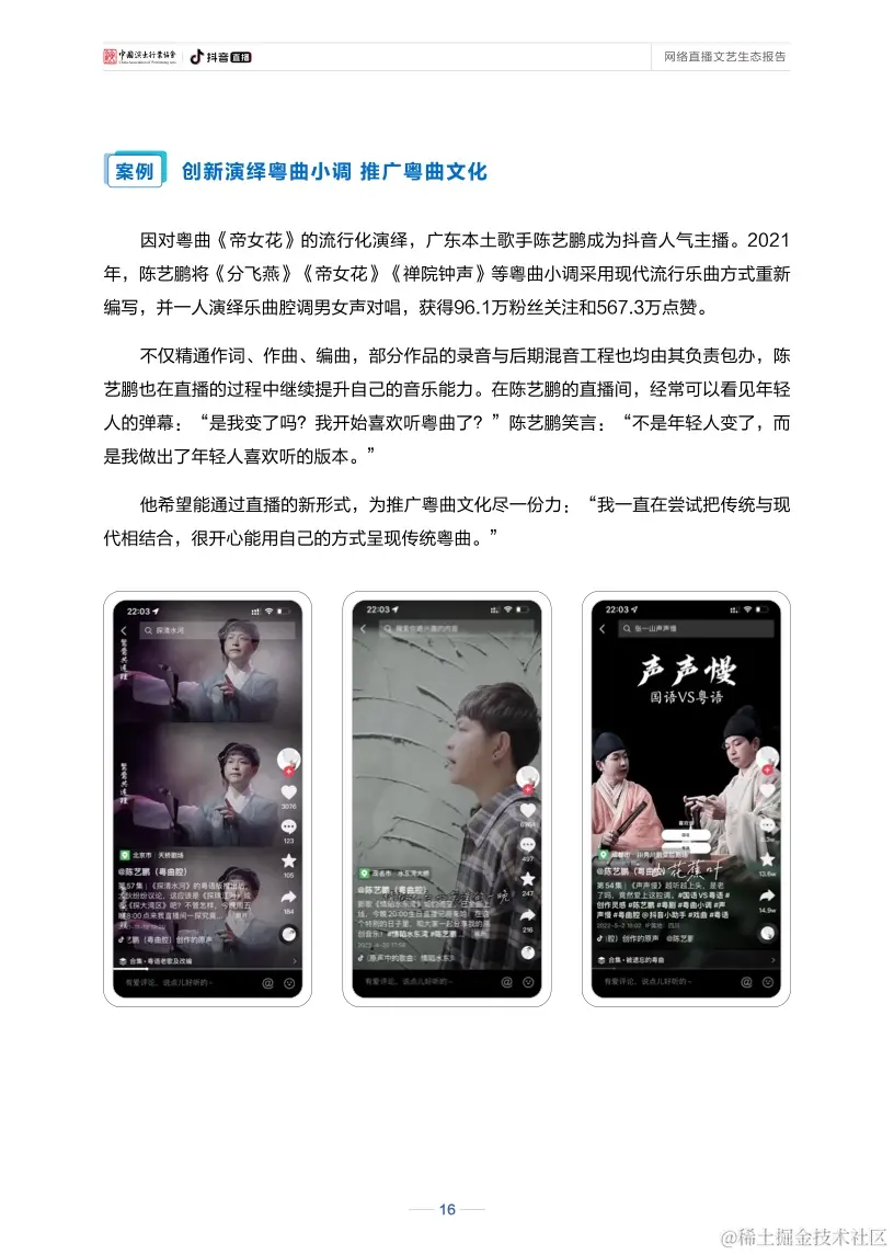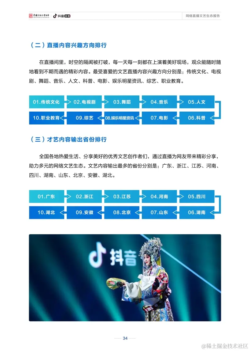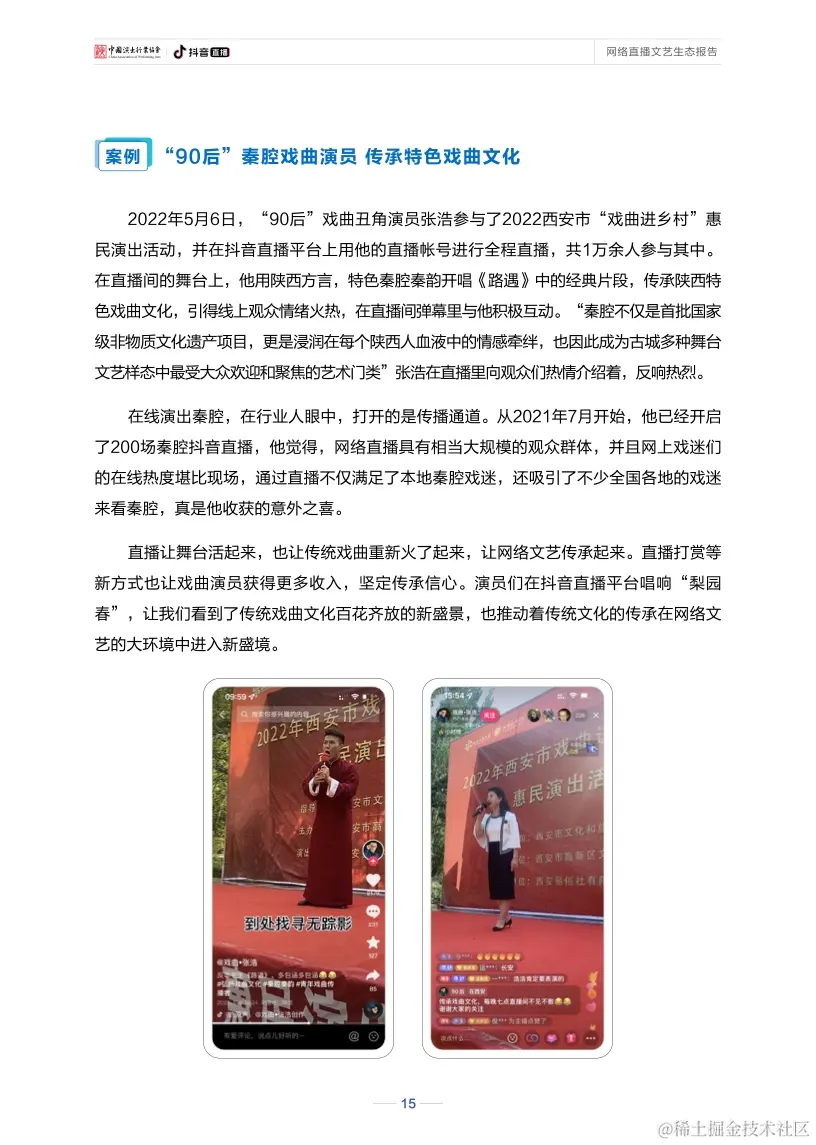 报告显示,新冠肺炎疫情发生以来,作为网络文艺新形态的直播已实现与戏剧、戏曲、话剧、歌剧等舞台艺术深度融合,产生了更加多维的文化影响。在直播间里听戏曲、看演出、赏才艺、学知识已成为新的文艺热潮。