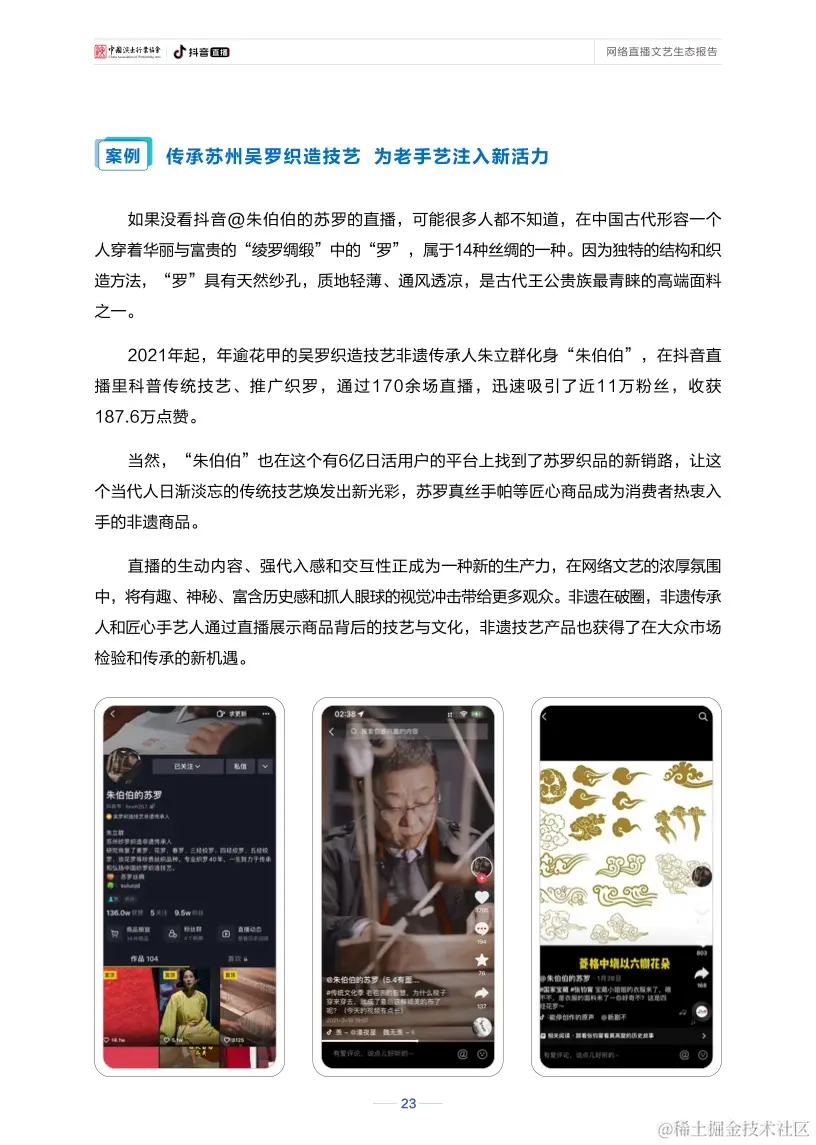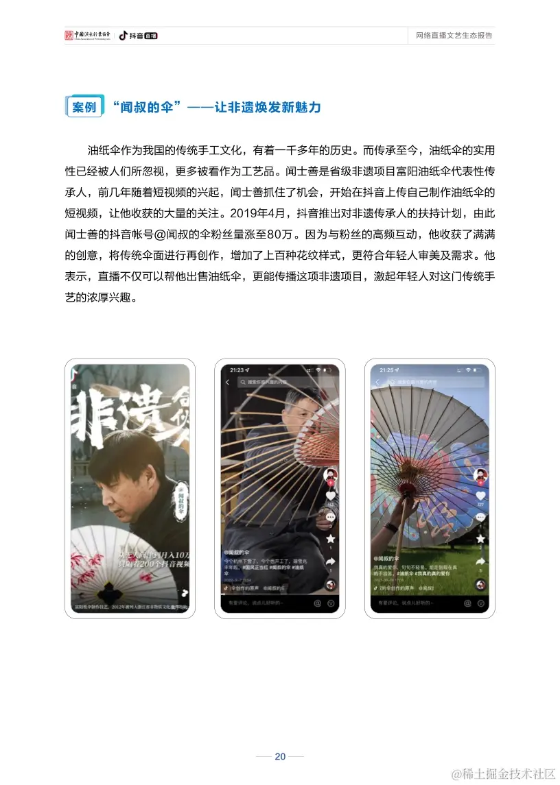 在新型互联网艺术思维的影响下,越来越多不同年龄段、不同行业、不同类型的创作者,都参与到了网络文艺直播的生产中来。直播具有受时空地域限制少、实时性互动性强的特点,这让各类艺术的内容创作产生了新灵感、表演形式更生动,也让民间文化找到新舞台、焕发新光彩。表演门槛不设限、表演舞台接地气,直播间里每个人既可以是观众,也可以成为演员。听戏曲、逛非遗、学才艺、看演出,直播让艺术与生活走得更近,也让艺术的传播和传承方式有了新方向。
