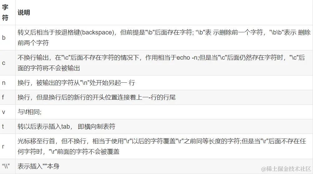 echo -e 表示输出转义字符,将转义后的内容输出到屏幕上