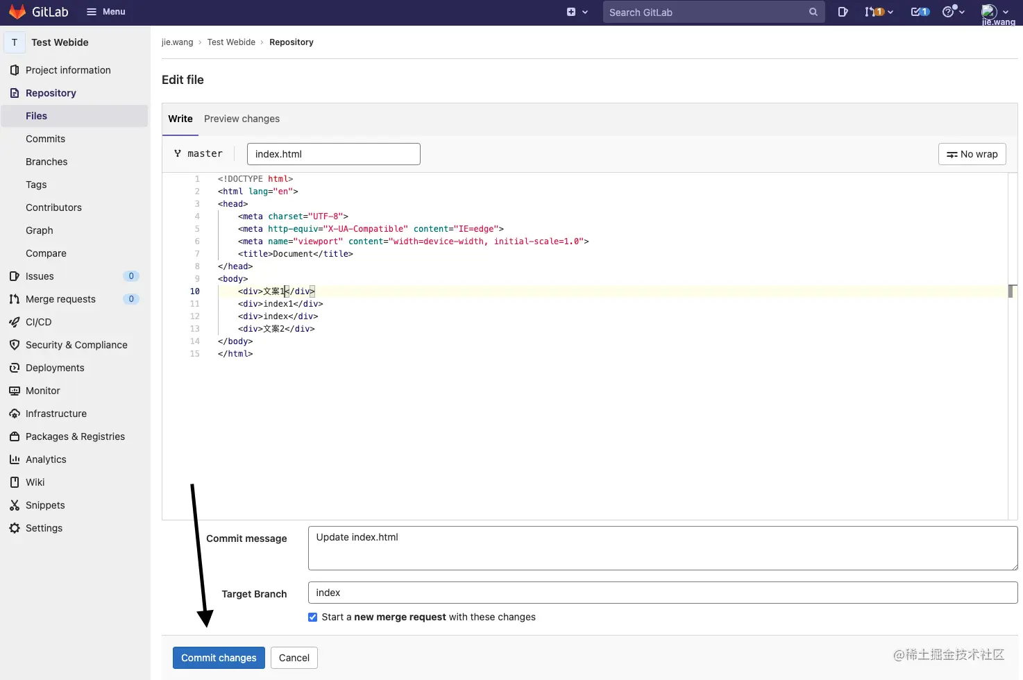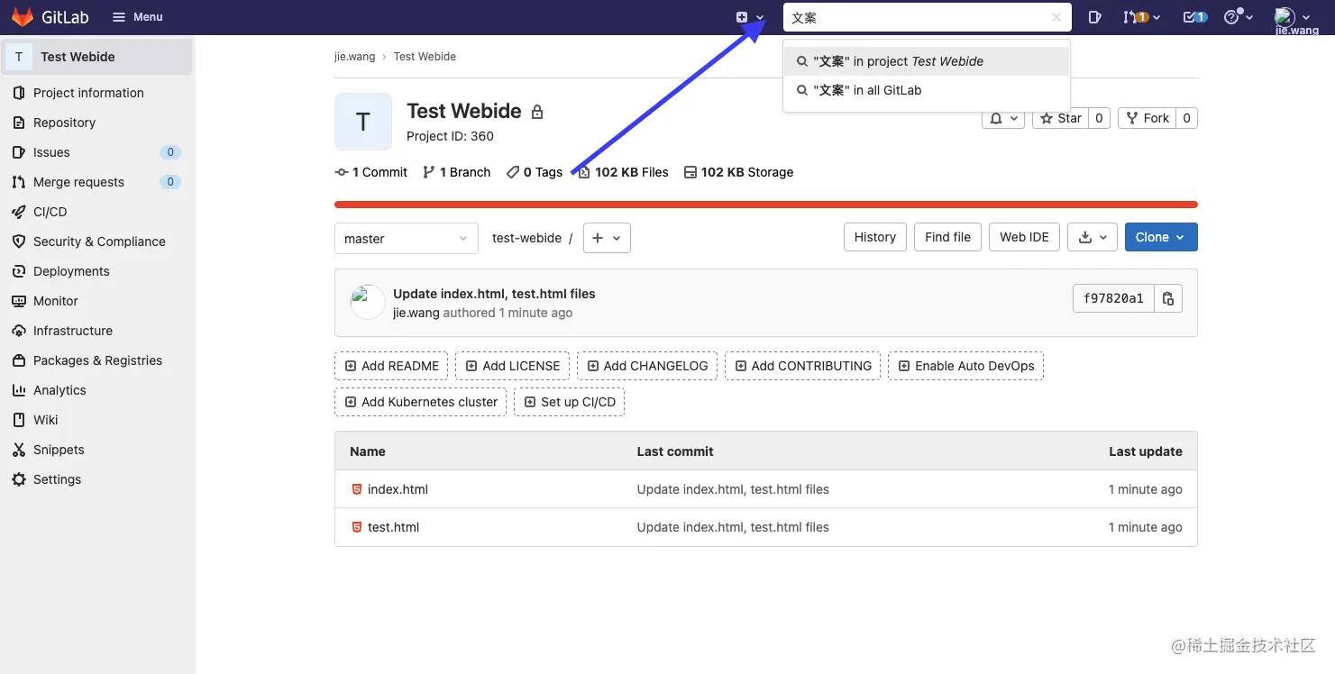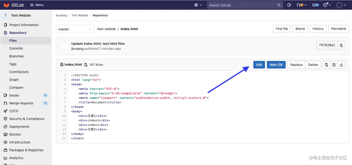 看了上面这么多高大上的方案,感觉对于现在这个场景来说,有点大才小用了,要部署docker,各种配置等等,梳理我们的需求其实只需要完成在web端检索,简单编辑提交即可,gitlab的简单webIDE就可以做到