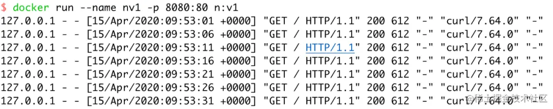 启动后,HEALTHCHECK 就会5秒钟访问一次 Nginx 服务,来确保容器运行的状态。