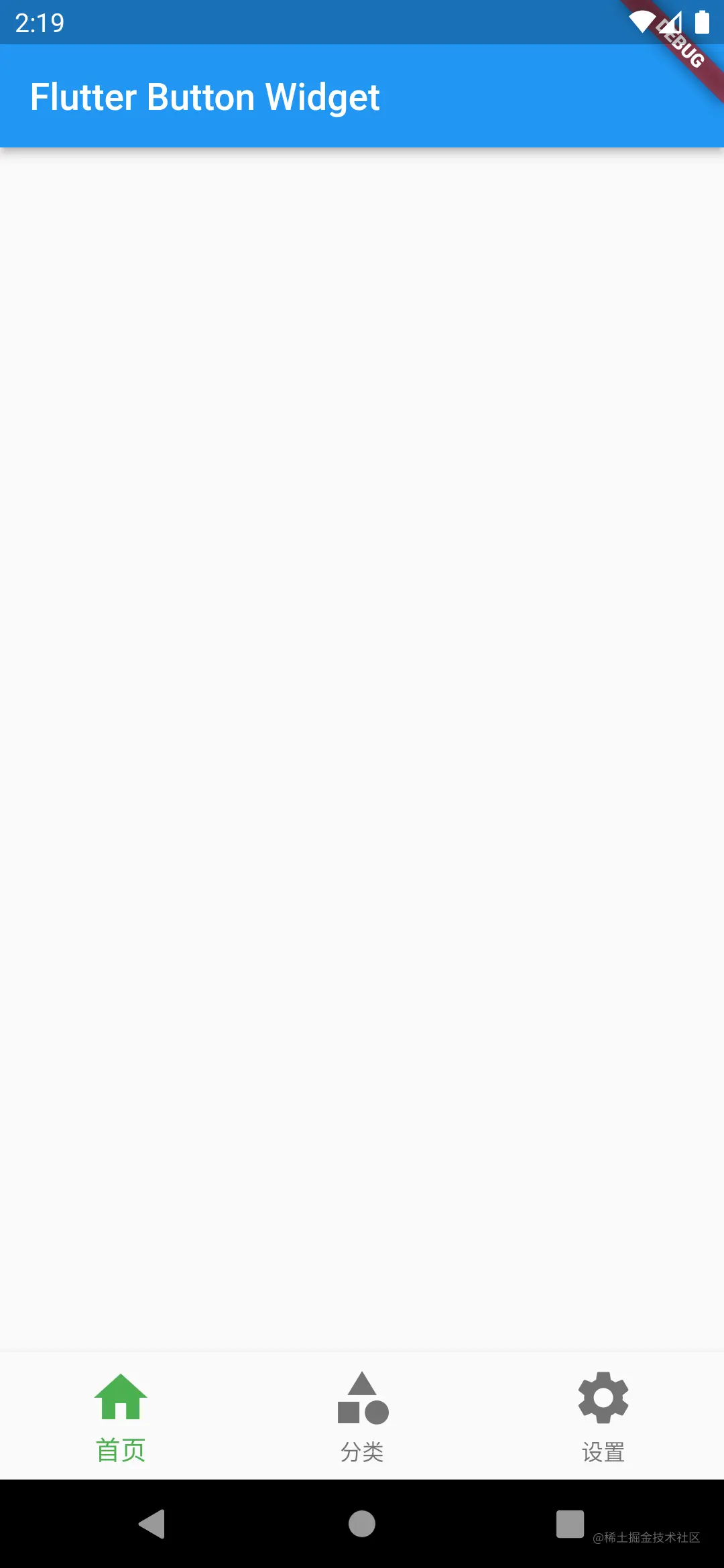 FlatButton 见名知意:扁平的按钮,和 RaiseButton 刚好相反,没有凸起的效果。将上述 RaiseButton 换成 FlatButton 效果如下: