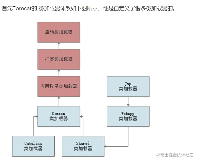 - WebappClassLoader:各个Webapp私有的类加载器,加载路径中的class只对当前Webapp可见;
