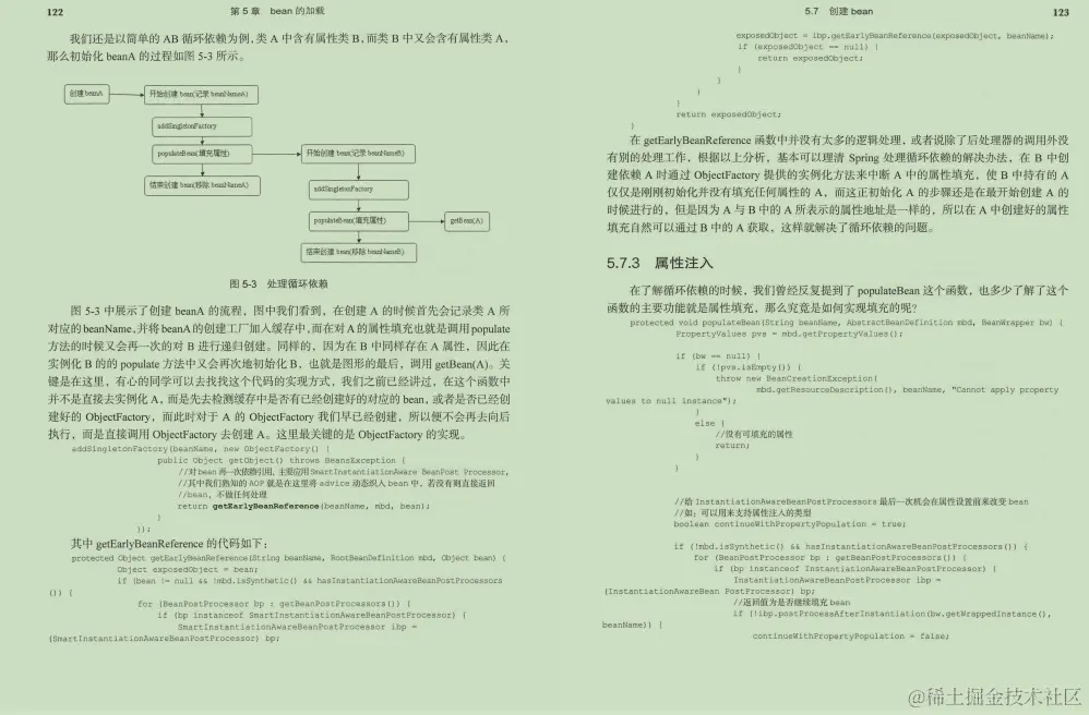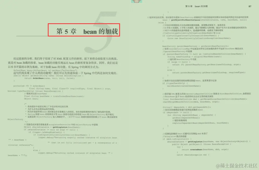 **第5章bean的加载,**经过前面的分析,我们终于结束了对XML配置文件的解析,接下来将会面临更大的挑战,就是对bean加载的探索。bean 加载的功能实现远比 bean的解析要复杂得多,同样,我们还是以本书开篇的示例为基础,对于加载bean的功能,在Spring中的调用方式为: