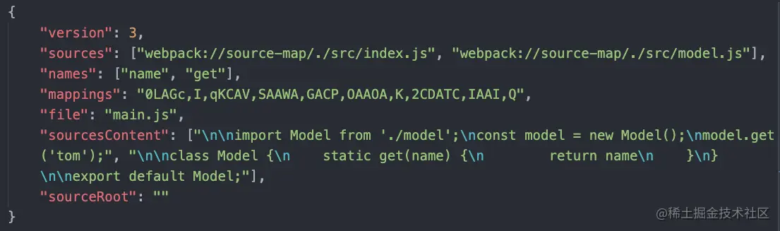 version:sourcemap的版本号,目前最新的版本号为3sources:源码文件路径names:源码所有变量名和属性名mappings:记录位置信息的base64-vlq编码file:转化后的文件名sourcesContent:源码sourceRoot:源码所在的目录