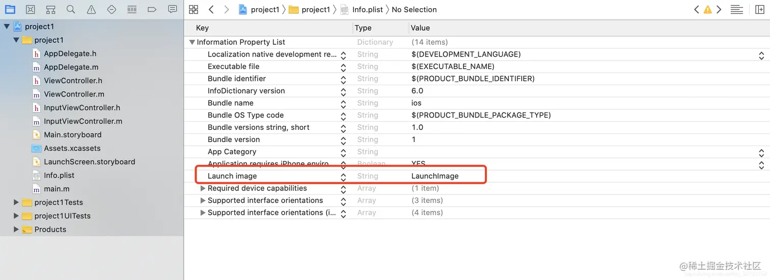 2.再在 targets中删除 Launch screen interface file base name 并添加 LaunchImage 并设置 LaunchImage