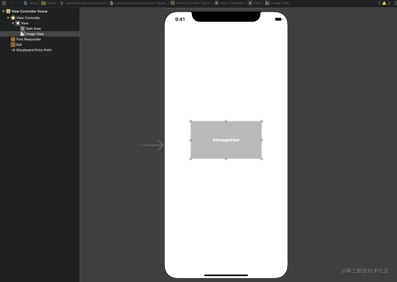 2.在LaunchScreen.storyboard里的viewcontroller添加一个imageview。