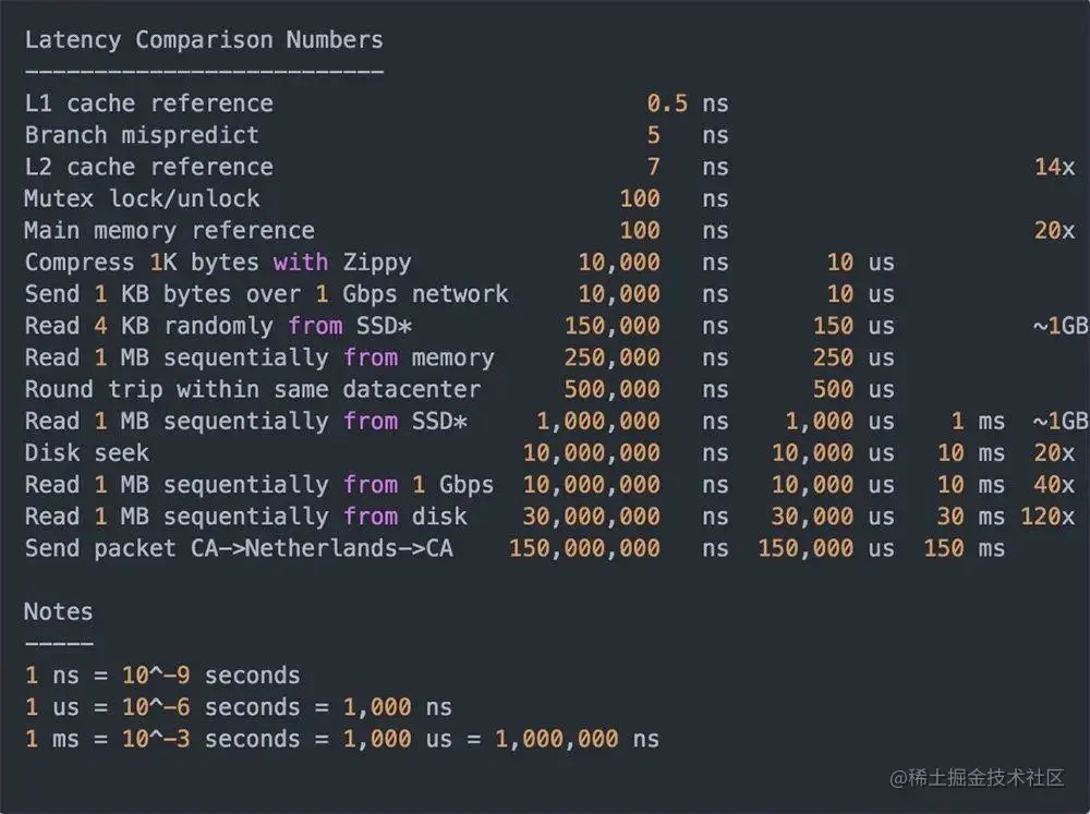 从上图中发现,同机房两台服务器跑个来回,再从内存中顺序读取1M数据,共耗时0.75ms。如果从硬盘读取,做一次磁盘寻址需要10ms,再从磁盘里顺序读取1M数据需要30ms。可见,使用内存缓存性能上提高多个数量级,同时也能支持更高的并发量。