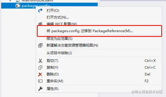 在packages.config上右键 ,选择【将 packages.config迁移到PackageReference】 。