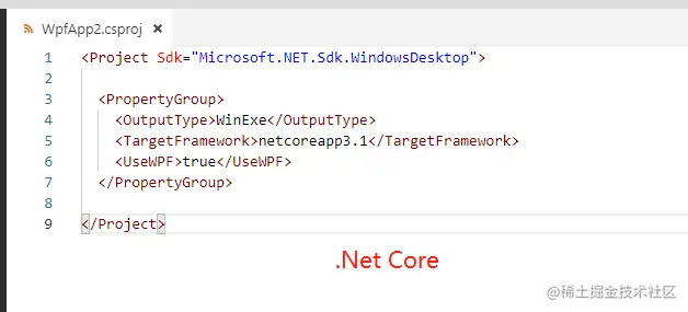 新建一个WPF工程,对比.Net Framework和.Net Core的项目文件