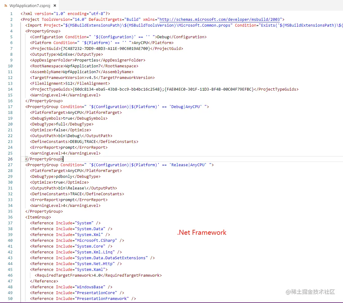 在 .Net Framework的csproj文件中,可以看到记录了很多信息。