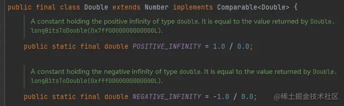 在 Double 和 Float 里面都定义了“正无穷”和“负无穷”这两个常量: