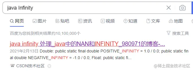 于是我用 “Java Double Float Infinity” 关键字去查询了一下: