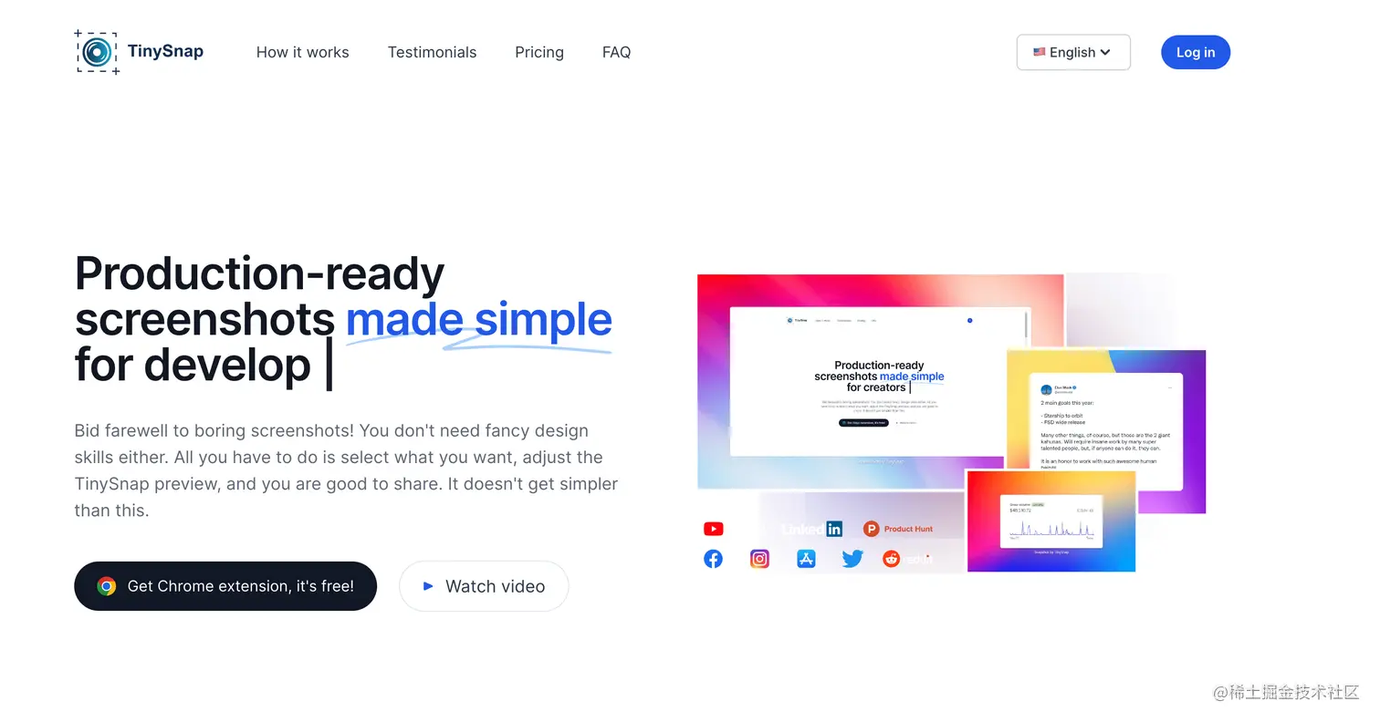 - Tinysnap - 截图美化工具, @LuoBaishun 的作品,作者今年刚开始尝试做独立产品,受 Indiehackers 社区的熏陶,在尝试 build in public。团队另外一个产品 heyform 也做的不错。都做的很完整了。期待团队后续的产品计划。