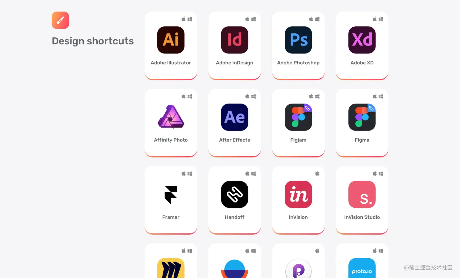 - Shortcuts - 作者@michelvanheest 制作的这个网站收集了一些热门设计开发工具的快捷键。