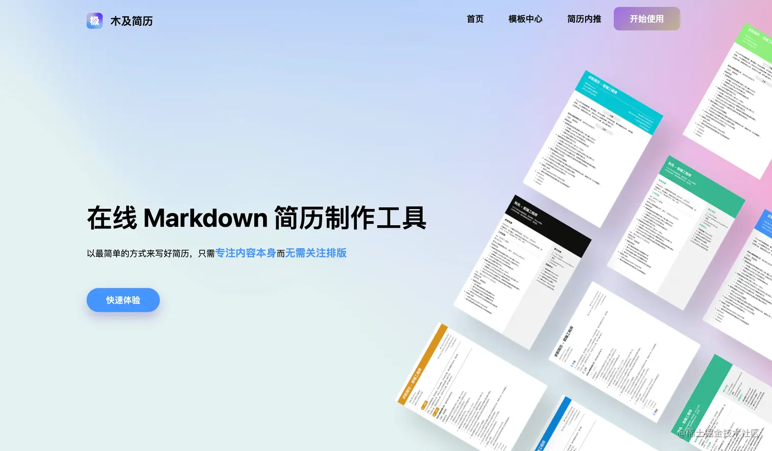 - 木及简历 - 作者@qiufenghyf是一款基于 Markdown 的简历工具,通过简单的纯文本就可以浸式地抒写简历,无心关心排版和样式。希望让用户关注简历本身专注于自己的思考与总结。月付9.9元的价格也很OK。