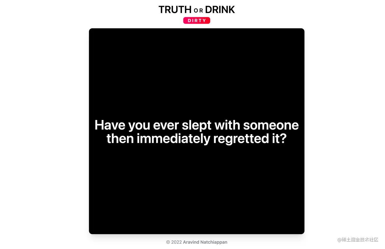 - Truth or Drink - 一个真心话大冒险喝酒游戏的小网站,喝酒玩游戏时候拿来玩。开源的。
